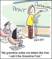 Recently, my 8-year-old son received a birthday card from his grandmother. He opened the card, looked at it and said, “I can’t read cursive yet.”