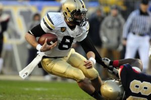“And finally, the objectives of the two games are completely different:  In football the object is for the quarterback, also known as the field general, to be on target with his aerial assault, riddling the defense by hitting his receivers with deadly accuracy in spite of the blitz, even if he has to use shotgun. With short bullet passes and long bombs, he marches his troops into enemy territory, balancing this aerial assault with a sustained ground attack that punches holes in the forward wall of the enemy’s defensive line.  In baseball the object is to go home!  And to be safe! – I hope I’ll be safe at home!”